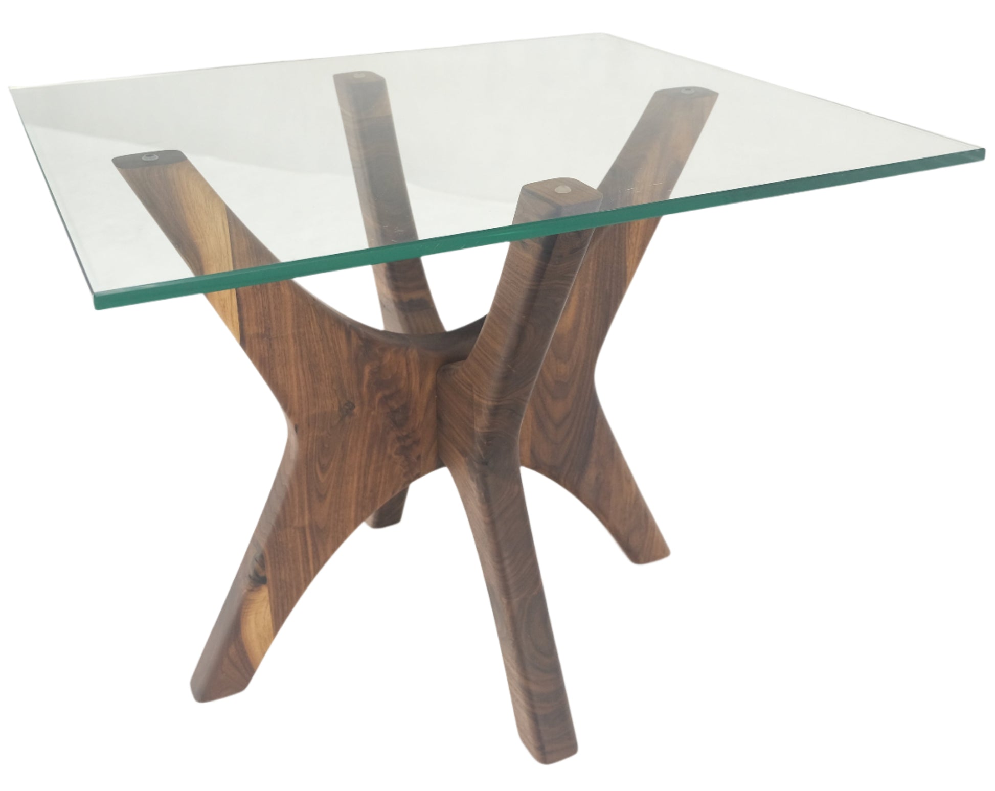 Modern Solid Walnut Wood Rectangular Glass Top Parabolic Side Table